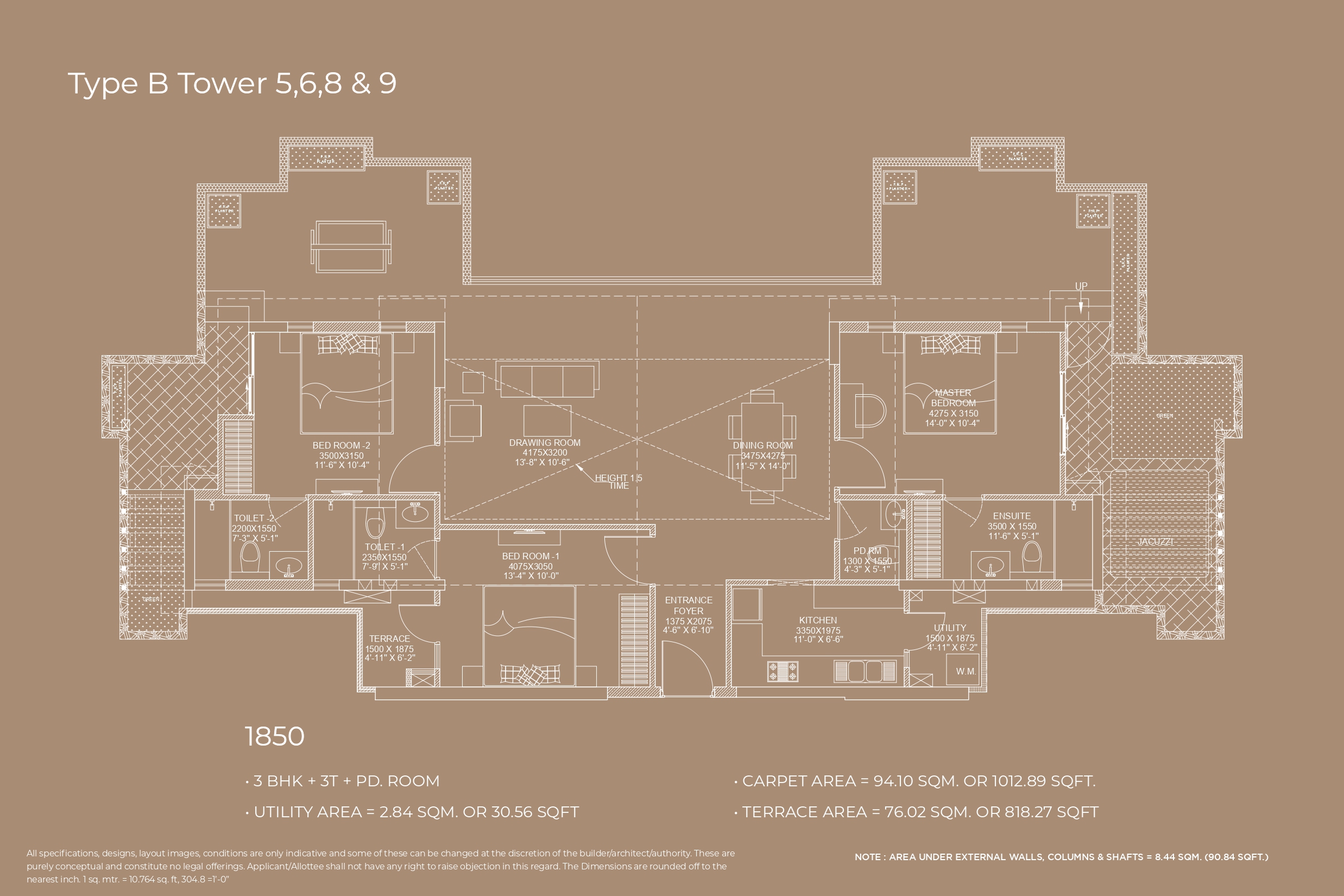 | 4 BHK | 1850 | 1.18 Cr | CLP |